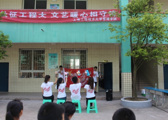 师生们为小朋友们捐赠了图书、学习用品以及体育用品等,还亲手用为小朋友们在教室里搭建起了一个小型图书馆,用生机勃勃的绿树贴画装饰了图书馆。同学们还特意为小朋友们表演了自编自导的玩偶剧《猜成语》,与小朋友们共同表演了歌舞《青春修炼手册》,现场欢乐不已。同学们的热情感染了小朋友们,他们也与大哥哥大姐姐们一起唱起歌来。演出后师生们还走访了两位经济困难学生家庭,了解了学生的家庭、学习情况,来寺村里不少孩子都是留守儿童,师生们为小朋友送上了学习用品及学校的纪念品,鼓励孩子们好好学习,多学本领,早日成才。