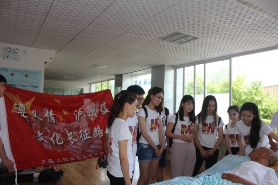 在我国新时期建设的过程中,总有一批英雄默默付出着,为向这些可爱的人们表示敬意,7月26日,师生们还来到了遵义荣誉军人康复医院看望了当地的荣誉军人们,师生们的到来受到了遵义荣誉军人康复医院的热情接待和大力支持。在荣誉军人康复医院里,师生们见到了在抗美援朝中受到重伤瘫痪的曹勇军人、在青藏铁路建设中受重伤的许明友军人、在任务中被严重烧伤的沙斌军人,师生们向这些荣誉军人们表示了慰问及崇高的敬意,感谢他们为祖国建设事业作出的贡献。荣誉军人们向师生们讲述了他们过去的英勇故事,向师生们展现了他们一生中最宝贵的财富。同学们还现场为老人表演了红歌演唱、长征诗歌朗诵、民族舞蹈,为荣誉军人们带来了欢乐。荣誉军人们用自己的一生和青春奉献了给了伟大的党和祖国,也用他们的亲身经历教育、激励着年轻一代,将红色革命传统代代传承下去。