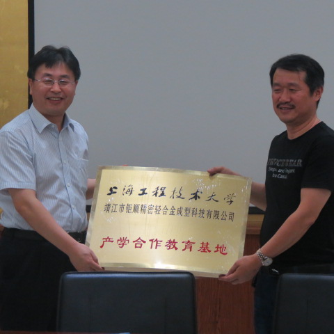 2016年8月2日下午,汽车工程学院王岩松院长、周洁书记、院办主任孟征云同实训中心徐新成主任、朱建军副主任一行来到第8届江苏科技镇长团团员邢彦锋教授所在的靖江市西来镇进行企业走访,收到了西来镇政府陆宏进副书记、卢栋副镇长和科技助理朱炳元的热情接待。首先到靖江市顺达模具厂进行了考察,顺达模具厂黄志刚总经理带领各位老师参观了生产车间,然后在会议室进行了深入的交流。黄总介绍了顺达模具厂的发展历程、产品种类以及目前在生产中存在的问题,尤其提出了企业发展过程中人才和科技的重要性。王岩松院长介绍了汽车工程学院的概况和研究方向,尤其针对顺达模具厂存在的问题进行了深入的分析,为双方找到科研合作的契合点奠定了基础,指出了汽车学院的学生可以参加顺达模具厂的生产实习和岗位实习工作,实现双方的共赢。黄总对目前蓝领工人难找的情况进行了讲述,希望可以引进自动化压铸线,对此情况,实训中心的徐新成教授介绍了实训中心的自动化加工制造的科研成果,双方约定后续深入探讨,帮助顺达模具厂进行自动化生产线的升级改造。最后,汽车工程学院与顺达模具厂签署了产学合作教育基地的协议书,王岩松院长向黄总经理移交了产学合作教育基地的铜牌。