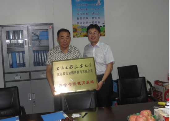 随后,汽车工程学院王岩松院长、西来镇卢栋副镇长一行到达了江苏双金紧固件制造有限公司,得到了赵金涛董事长的热情接待,双方在会议室进行了友好的交谈。赵董介绍了自己的发展历程、创办公司的经过、产品种类以及面临的问题。赵董着重强调了目前紧固件行业存在问题,在招标的过程中,需要自动化的检测设备。王岩松院长介绍了学院的研究方向,就检测方面同赵董深入的交换的意见。让挂职团员邢彦锋教授详细了解双金公司的技术需求,后续深入企业挖掘双方的契合点。最后,王岩松院长同赵金涛董事长签署了产学合作教育基地的协议书,王岩松院长向赵董移交了产学合作教育基地的铜牌。