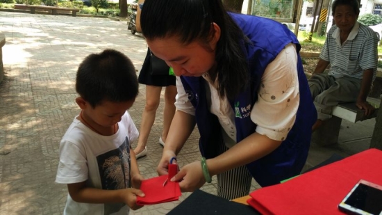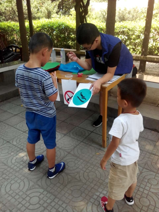 志愿者们向居民们展示了布贴画的历史传承以及制作工艺,并且耐心地讲解制作过程,对居民们询问的问题也一一进行解答。,虽然今天天气炎热,但是居民们还是踊跃参加了布贴画以画传心环节,布贴画是以无纺布为材料,将一些图标,例如禁烟、禁酒的标志,还有一些游泳、跑步等标识,通过无纺布展现出来,不仅很好地宣传了布贴画的制作过程,还可以提醒了当地居民健康的生活是通过运动得到的。有不少小朋友们在结束后还询问志愿者下次的活动时间,当志愿者们告诉他们明天还有手帕印染的互动环节时,他们纷纷表示明日还会过来参与,当听到小朋友们的回复的时候,志愿者们的心里乐滋滋的。