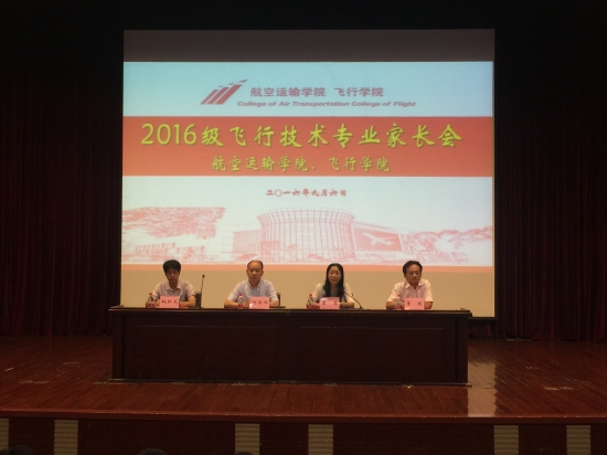 9月6日,飞行学院在图文信息中心志宏堂召开2016级飞行技术专业新生家长会,航空运输学院、飞行学院院长何法江,党总支书记虞蓉,副院长姚红光,飞行技术系全体教师、辅导员以及东方航空有限公司、吉祥航空代表参加会议。会议由学院党总支副书记李程主持。