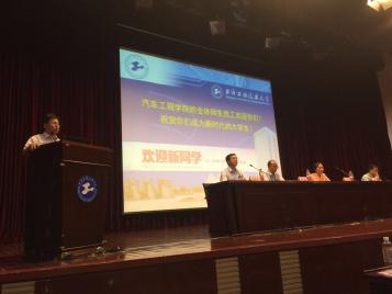 紧接着院长王岩松教授以《做好学习规划,做合格大学生》为题,为同学们上了精彩而生动的一课。他先是介绍了2016级新生基本情况,用详实的数据说明了汽院学子有着良好的教育背景,体现了汽院优良的生源质量;其次王院长向同学们全面细致简明扼要的阐述了汽车工程学院的情况,从师资水平到科研发展,从实践到理论研究,从人才培养到学生竞赛,王院长如数家珍娓娓道来。最后他发自肺腑的告诉广大新生如何适应大学学习生活,鼓励同学们在学习上努力进取,生活上严于律己,努力成为有责任感、有事业心的时代青年。