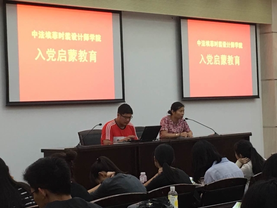 9月8日晚,中法埃菲时装设计师学院2016级新生在图文信息中心第三报告厅接受了党的启蒙思想教育的第一课。本次启蒙教育由服装学院党委副书记、中法学院学生工作人张漪老师主讲。