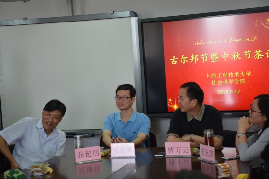 为了促进文化之间的交流与融合,9月12日上午,社会科学学院在行政楼815举行了古尔邦节暨中秋节师生茶话会。社会科学学院党总支书记曹开云,院长刘志欣,党总支副书记程玉莲、张健明教授、两位新疆师范大学的老师、辅导员及大一全体少数民族同学出席了会议。