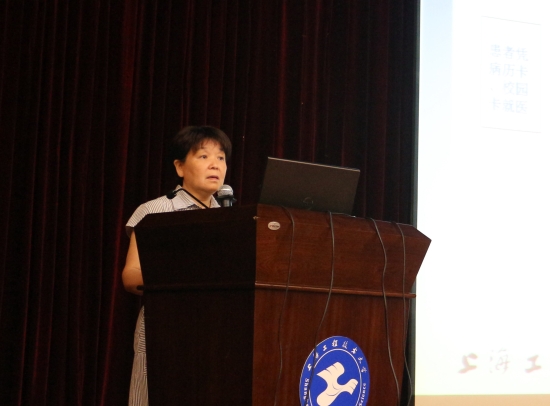 门诊部主任张怡娟医生为研究生介绍了健康卫生基本常识、上海市大学生医保政策,并详细介绍了在校看病、转院、住院和报销的基本流程和要求,并强调了有关病假、休学以及生育的规定。