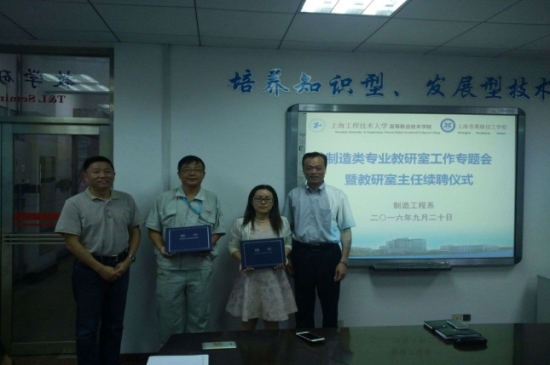 高职学院近期召开了“制造类专业教研室工作专题会暨教研室主任续聘仪式”,高职学院柳如荣书记、胡宁副院长、制造工程系主任万军老师、副主任杜继涛老师、刘素华老师、全体教研室主任参加了此次会议。