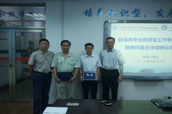 会上,柳如荣书记和胡宁副院长分别为数字化制造技术专业教研室主任周立波老师和副主任郑民章老师、模具成形技术专业教研室主任杨梅老师和副主任曹志鸿老师、机械制造工艺及测量技术专业教研室主任徐福林老师和副主任张伟老师颁发了教研室主任聘任证书。