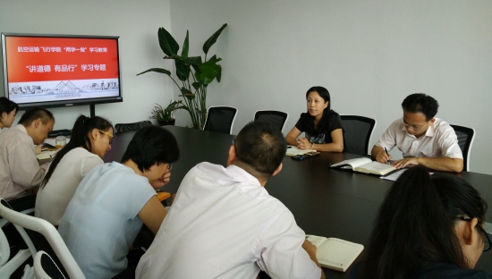 讲道德、有品行是衡量一名共产党员是否保持先进性的标准之一。党员德行好,群众才认可;党员德行高尚,才能成为群众的一面旗帜。9月27日下午,航空运输·飞行学院在学院会议室开展“讲道德,有品行,做合格支部书记”的专题学习会。学院党总支书记虞蓉、副书记李程、组织员、支部书记参加了此次会议,会议由虞蓉主持。
