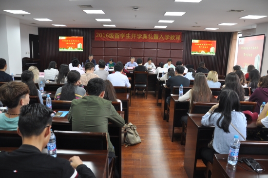 9月29日下午,2016级留学生开学典礼暨新生入学教育在行政楼506举行。来自俄罗斯、哈萨克斯坦,乌兹别克斯坦、蒙古、老挝、越南等国家的50多名本科和研究生新生参加了此次典礼。管理学院、电子电气工程学院等相关学院的副院长、副书记、学业导师代表及辅导员老师出席了典礼。