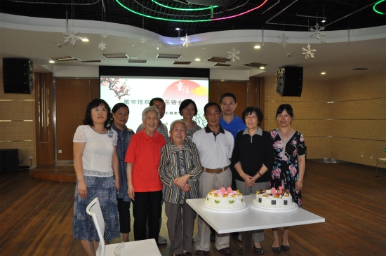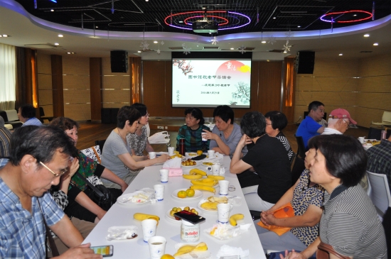 之后,在“祝你生日快乐”的音乐声中, 80周岁的寿星张冠佩和王美茹老师、70周岁的寿星陈波和胡世瑛老师移步前台,亲自切开精美的生日蛋糕、吹灭生日蜡烛,在座的老师纷纷向寿星们表达生日祝福。原图书馆馆长金善勤、薛国雄等表达了对图书馆发展的欣慰之情,并对图书馆今后的发展积极献计献策。其他老师也纷纷发言,共叙友情。茶话会在愉快的氛围中圆满结束。