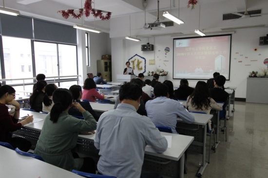 10月14日下午,化学化工学院在实训楼4405室召开了2016年区人大代表换届选举工作动员会。全体教职工参加会议,化工学院党总支书记刘宇虹主持会议。
