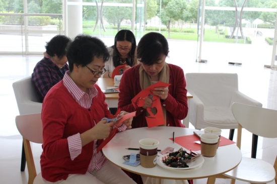10月13日下午,教学楼J楼咖啡吧宾朋满座,笑语盈盈,后勤实业发展中心工会组织开展了妇女小家美食天地系列活动。后勤女教职工以及各部门代表聚在一起,参加《美食与美容》讲座学习和《美食与剪纸》DIY活动,尝试剪纸创作,度过了一个有意义的下午。我校工会主席沈海庆亲临现场指导。