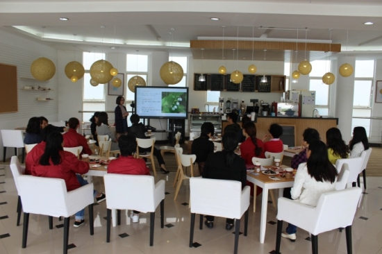 活动中,主讲人郭芹从十种美容食品吃出白嫩肌肤、七种食物强力消脂、瘦子最爱的九种健康主食三块内容为大家做了介绍,重点讲解了我们平常生活中常见的健康食物:土豆、玫瑰花、黑巧克力。从土豆的神奇功效,玫瑰花的健康饮用,以及黑巧克力的种种好处的解说中让大家对这些食物有了新的认识和食用方法。姐妹们还对各种食物的烹饪进行了探讨。