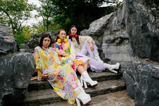 因为文化和自然环境的不同,学生所展示的作品也纷繁脱俗。一件点缀着五彩羊毛绒线团的服饰从T台上缓缓走来,这是新西兰学生劳拉(LAURA)的作品(Revive)。落英缤纷、五彩斑斓是她的作品给观众留下的最初的印象,使得台下的观众仿佛进入了伊甸园。劳拉的作品取材于他的家乡,有田园,有花有草。他想用自己的作品让更多人反思被电子产品包围的生活,呼唤人们回归梦想中的花园。于是,他的作品系列采用了4种不同的面料,有羊毛的,有棉麻的,有欧纱的,还有天鹅绒的,呈现了观众看到花朵后的不同感受。最让人感受到他的“独具匠心”的是开在服装上的花费了6斤羊毛,扯了近千枚的朵朵“绒毛鲜花”。