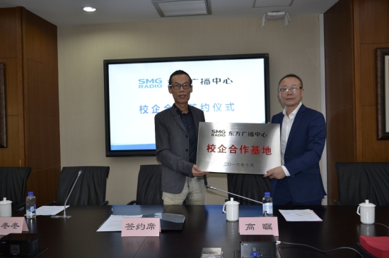 10月14日下午,艺术设计学院院长高瞩教授、副院长李光安教授一行,受邀前往上海广播电视台/上海文化广播影视集团东方广播中心(以下简称“SMG东方广播中心”),参加了校企合作基地签约授牌仪式。签约现场,高瞩院长代表我校艺术设计学院与SMG东方广播中心签订了校企合作协议,并接受了对方授予的“校企合作基地”牌匾。