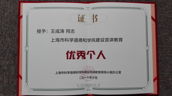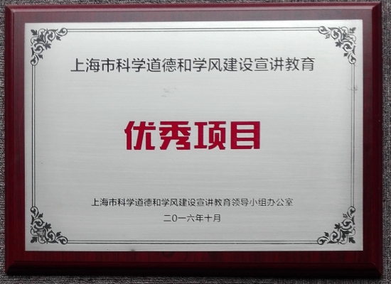 此次报告会由上海市科学技术协会、上海市教育委员会联合主办,大会表彰了上海市科学道德和学风建设宣讲教育工作优秀组织单位奖、优秀个人奖、优秀项目奖和网络人气奖。