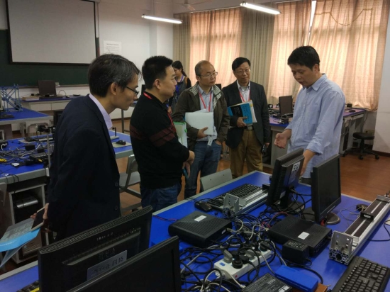 中国工程教育专业认证专家组参观了中心实验室的近代光学实验室,传感器实验室,电学实验室,演示实验室等实验室,对我校物理实验室的实验室建设、实验设备情况、教学安排及学生选课情况等情况进行了细致的考查。张朝民副院长向专家组介绍了我校物理实验室的总体概况和近几年的建设情况,并就学生的选课形式课时设置等问题进行了详细讲解。此外,还就专家感兴趣的功能液晶屏,原子力显微镜,桥梁振动,等实验项目进行了演示和探讨。