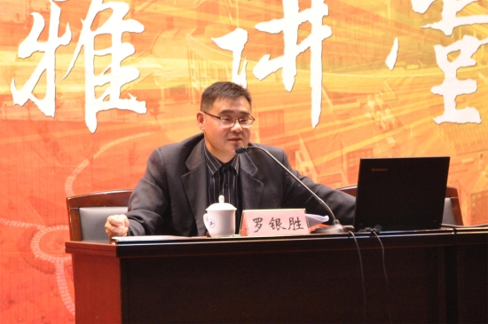 11月28日下午,图文信息中心第二报告厅座无虚席,《杨绛传》作者、上海市作家协会会员、上海立信会计金融学院教授罗银胜应邀来到我校博雅讲堂,以《“死者如生生者无愧”——我眼中的杨绛先生》为主题为我校师生奉献了一场精彩讲座。此次讲座是图书馆第七届“读者服务月”系列活动之一,由图书馆主办,宣传部协办,图书馆党政领导班子和我校300余名师生一起聆听了本次讲座,讲座由图书馆馆长宓一鸣主持。