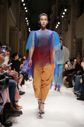 毕业生作品在模特的演绎下,生动鲜活。整场秀渐入佳境,高级定制服装的精髓灵魂来自于独有的设计,在场嘉宾领略到了IFA学院毕业生精确完美的立体裁剪,精湛的工艺,极具创造力的设计,对面料改造的精准拿捏以及色彩的叠加与碰撞,他们让整个T台绽放出融合之美。随着背景乐渐止,整场秀完美收场,真正展现出“创意熔炉”的强劲实力以及高级定制的魅力。