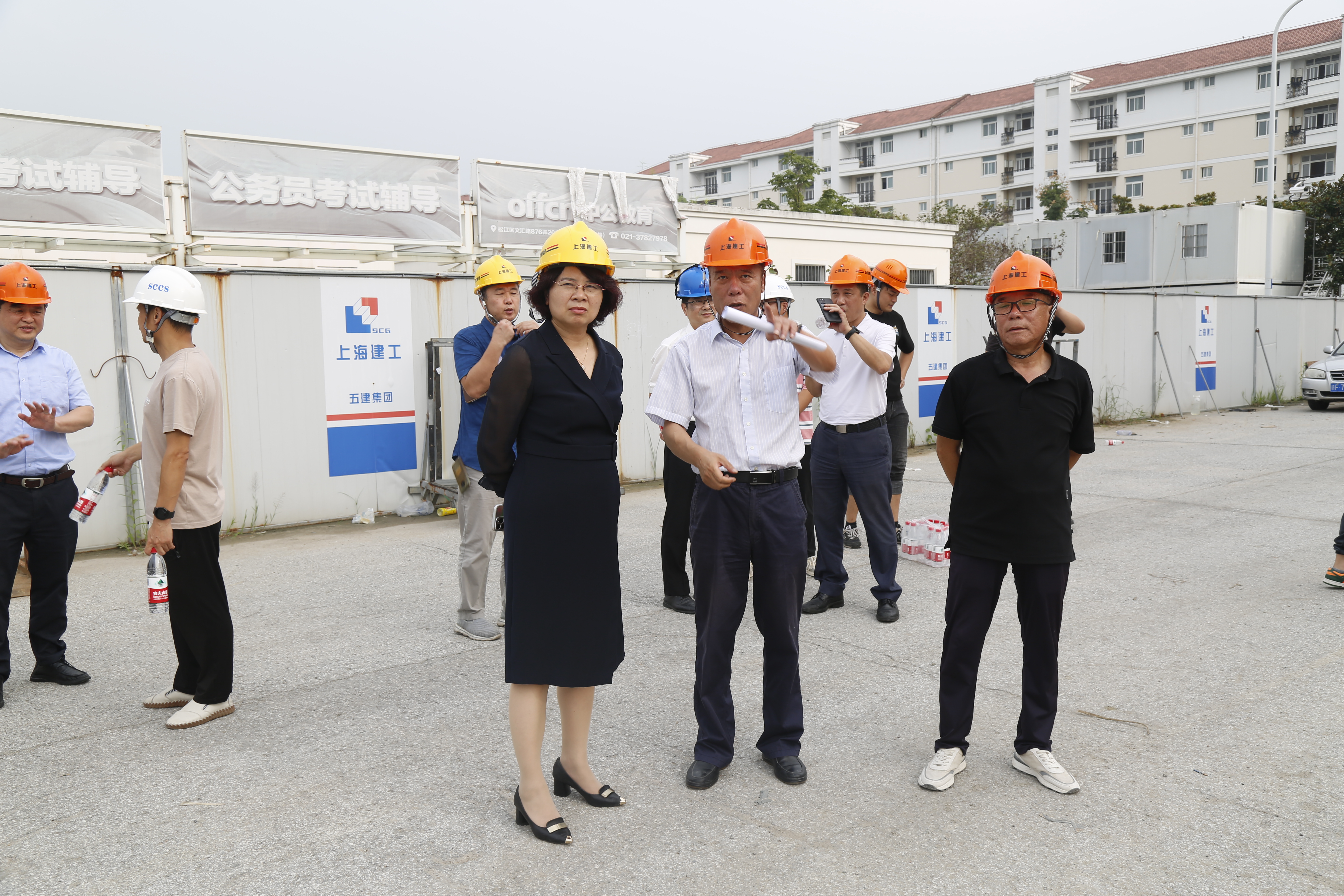 在校内在建工地,朱晓青副书记、副校长现场听取施工单位负责人介绍,强调做好施工场地封闭管理、施工人员管理,既要保施工质量,更要重安全意识和行为,确保校园平安稳定。