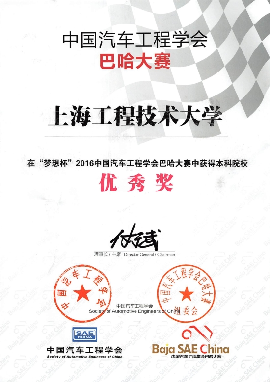 10月18日-22日,在由中国汽车工程学会主办的中国汽车工程学会梦想杯巴哈汽车大赛上,我校龙腾车队作为63支全国汽车类高校中的一员通过了两百多项的车辆安全检查,以优异的成绩通过了静态车辆设计报告答辩;在长达四小时的耐力赛中,同学们全程冒着大雨完成比赛,并最终获得了优秀奖的好成绩。
