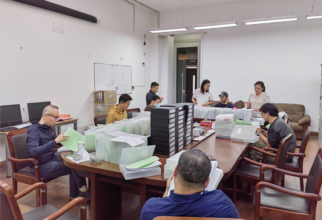 会后,学院全体班子及评估工作小组主要成员来到资料室,对审核评估材料开展学院内部检查,进一步提升自评材料的准确性和规范性。