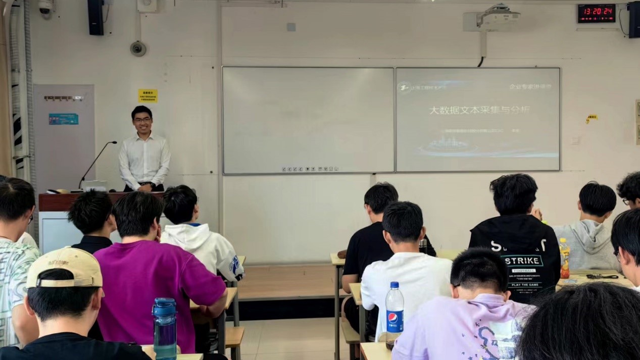 在授课过程中,李军博士首先通过生动的案例介绍了如何从不同的数据中发现其中所隐藏的信息;深入浅出地讲解了大数据文本提取与分析的方法、工具及模型;展示了他们公司在实践中所遇到的真实案例。整堂课内容丰富、生动有趣,受到了学生们的一致好评。通过这次讲座,学生们不仅对机器学习这门课程如何与实践相结合有了更深入的了解,也收获了很多实用的技能和方法。同时,本次课程也让学生们对本专业有了更深刻的了解,对自身需要努力的方向也有了更清晰的认识。