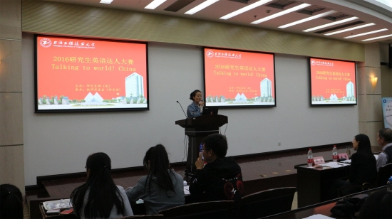 11月8日晚,由研究生处主办,校研究生会(学术部)承办的第八届研究生英语达人大赛在第三报告厅拉开帷幕,本次大赛的主题为“Talking to world . China”,是第十届研究生学术节的重要子活动。本次大赛邀请了外国语学院张冰天副院长、沈逸平、盛越、舒畅、孙晓青以及国际交流处聂慧老师担任评委。