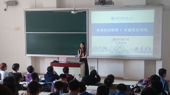 11月7日至11日这一周里,航空运输飞行学院为全面落实学校学风建设的工作要求,再次开展“迎评促建、狠抓学风” 的主题教育班会活动,并结合校训主题对全院学生进行学风教育。各班级同学在辅导员老师的组织下,重温校史,学习校训精神。