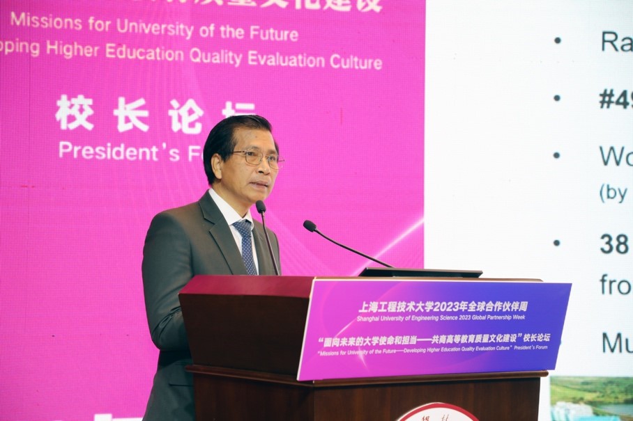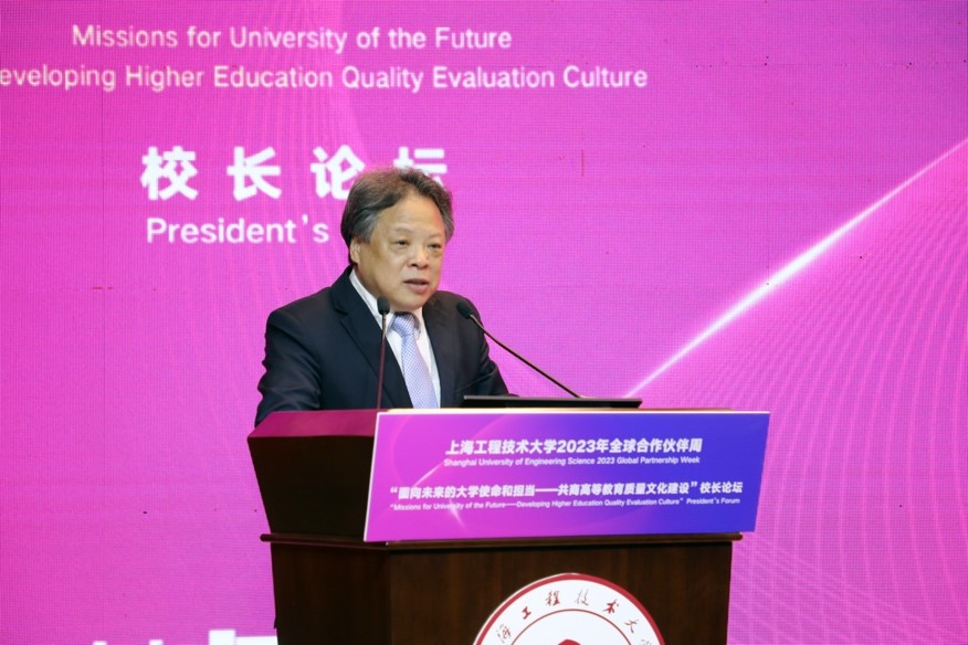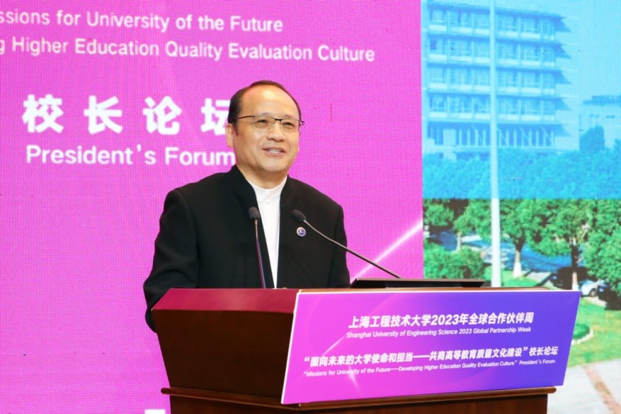俞涛校长以“高质量应用型人才培养模式探索及应用型大学的未来发展”为题,从上海工程技术大学的定位、愿景、使命及特色出发,与在座师生分享我校对高质量应用型人才培养模式的探索。他指出,大学的领导者,尤其是校长,需要将象牙塔建成学生追求知识的殿堂和精神的家园,人才培养需要“筑牢主体、打开窗户、敞开大门”,要以学生为中心,建立完备的质量保障体系和全球文化交流体系,培养学生扎实的专业素养和国际视野、关注学生的全面发展。他表示,我校期待与更多的合作伙伴增进互信合作,彼此赋能,为服务全球教育治理、推动人类文明发展做出应有的贡献。