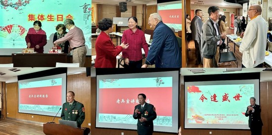 组织员叶寅汇报了关工委助力青年学生成长成才的实践研究情况。在集体生日会环节,学院精心准备了生日蛋糕,邀请退休教师代表共同切生日蛋糕,为离退休老同志庆祝集体生日。会上,特邀与学院长期合作的松江老兵讲故事宣讲团三位老兵来到现场,老兵们从自身经历出发,为大家讲述革命故事,道出心里话,用教育和宣传的力量,让军人的优秀品质和坚韧精神扎根人心,鼓舞大家生逢盛世,更应该自强自立。