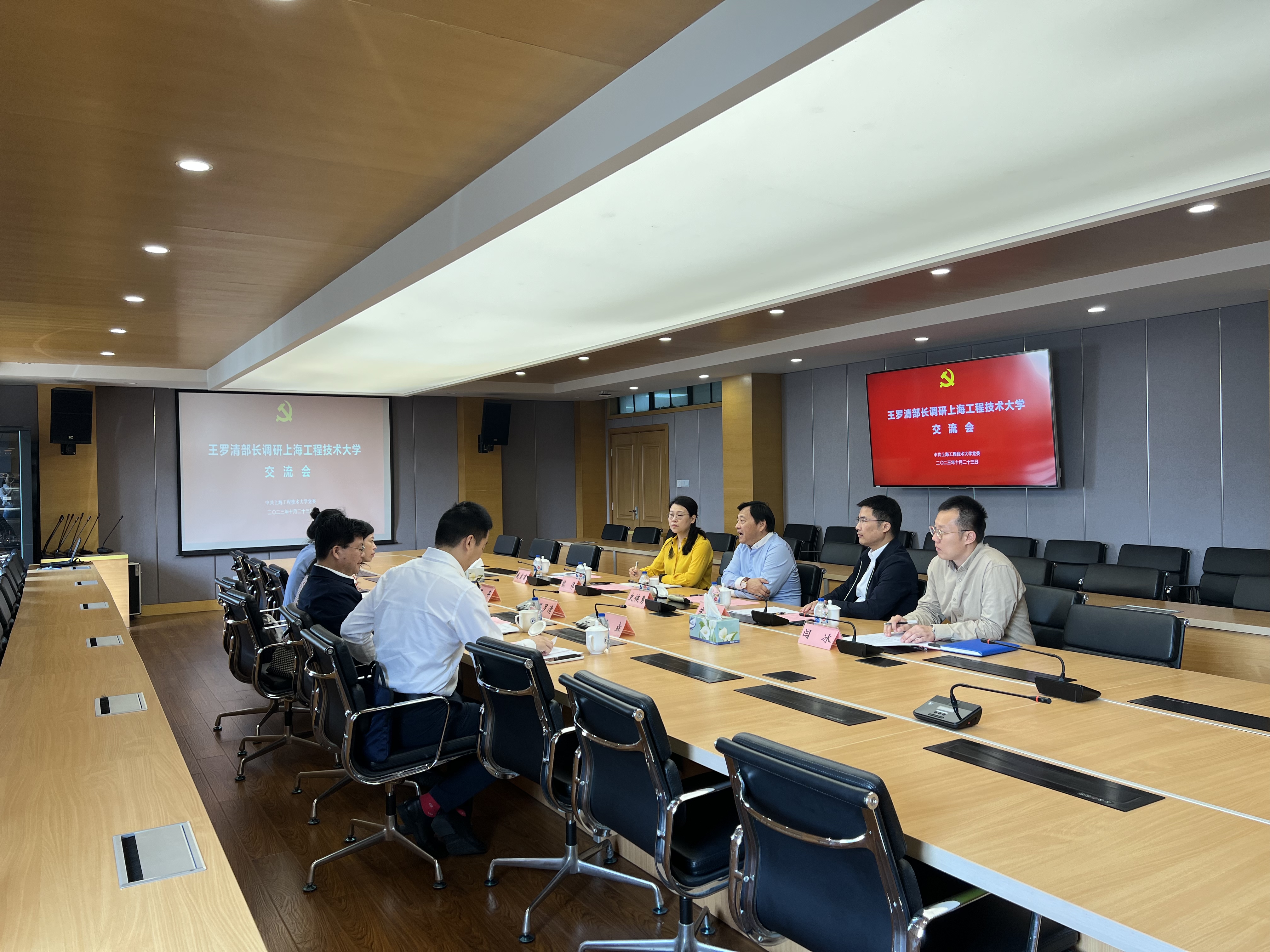 10月23日上午,长宁区委常委、统战部部长王罗清一行到我校调研统战工作,校党委副书记史健勇,党委常委、统战部部长朱洪春接待来访人员并座谈交流,党委统战部副部长熊伟、对外联络办公室副主任闫冰参加座谈。