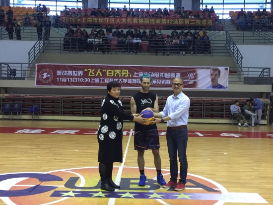 11月13日,在我校松江校区体育馆举办的“白乔丹校园行,史诗级扣篮表演”,现场气氛异常火爆,整座场馆座无虚席,校体育教学部谢敏主任和篮战CEO陈磊出席观看了本次表演。