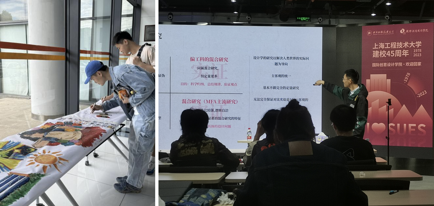 在建校45周年之际,国际创意设计学院策划了“以绘就创意国卷,献礼母校45周年华诞”“国际化发展校友论坛”“漫卷云舒话数媒茶话会”等一系列主题活动,邀请各级领导、海内外宾朋和校友相聚程园。国创学院院长顾艺、副书记马建立、副院长罗曼,师生代表共同迎接校友们的到来。