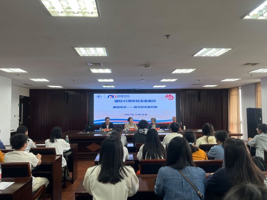 “我与校友面对面”活动由管理学院党委副书记张强主持,邀请了原管理学院党总支书记、学生处处长、退休第十党支部书记顾惠云老师,原管理工程系党总支书记杭育老师和原工商管理系主任、教学名师陈心德教授。三位退休教师为学生们讲述了校史,分享了初创时期办学的困难,鼓励在校学生珍惜学习环境,培养学风和求知精神,努力学习,时刻保持青春风采。