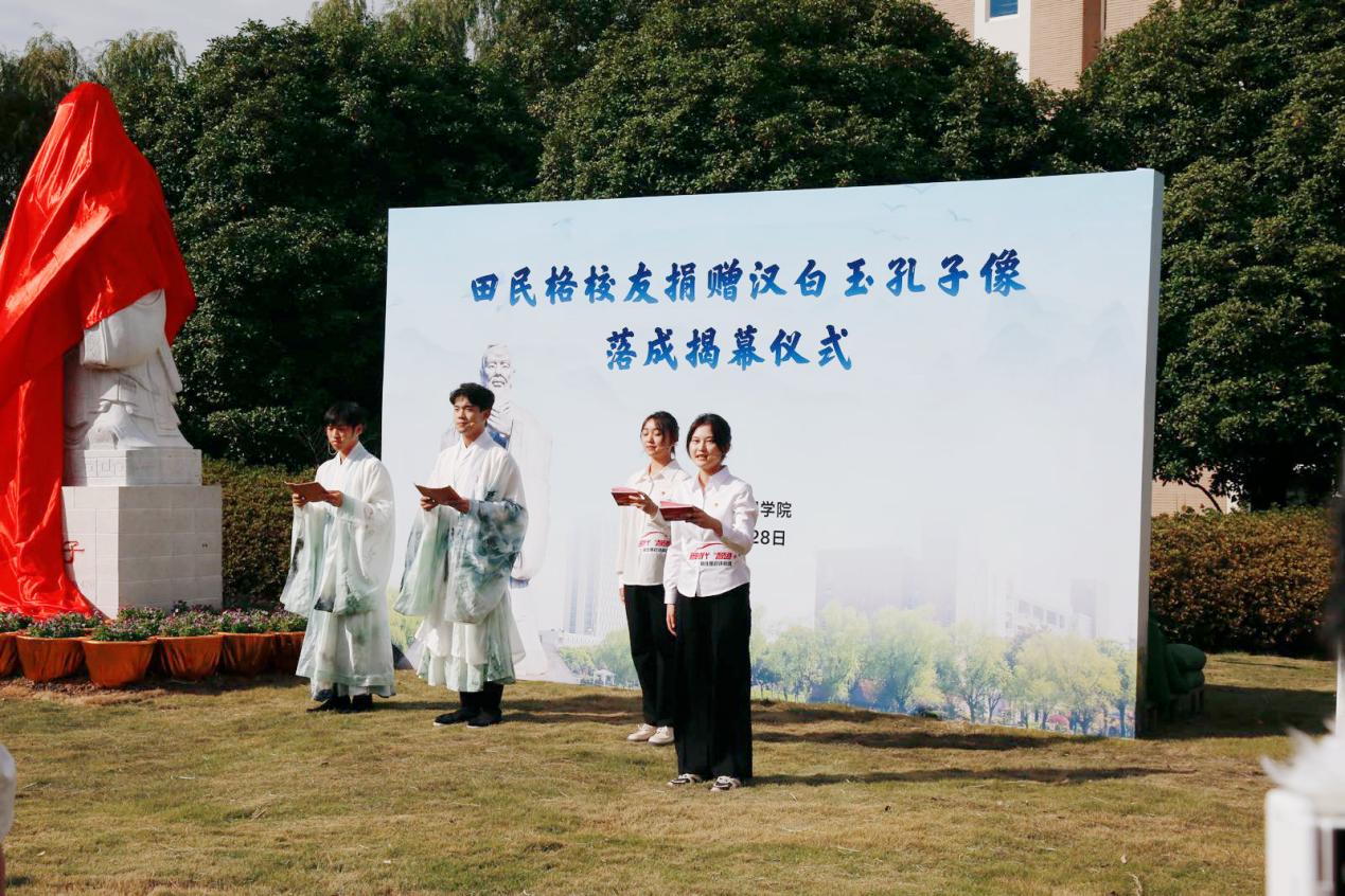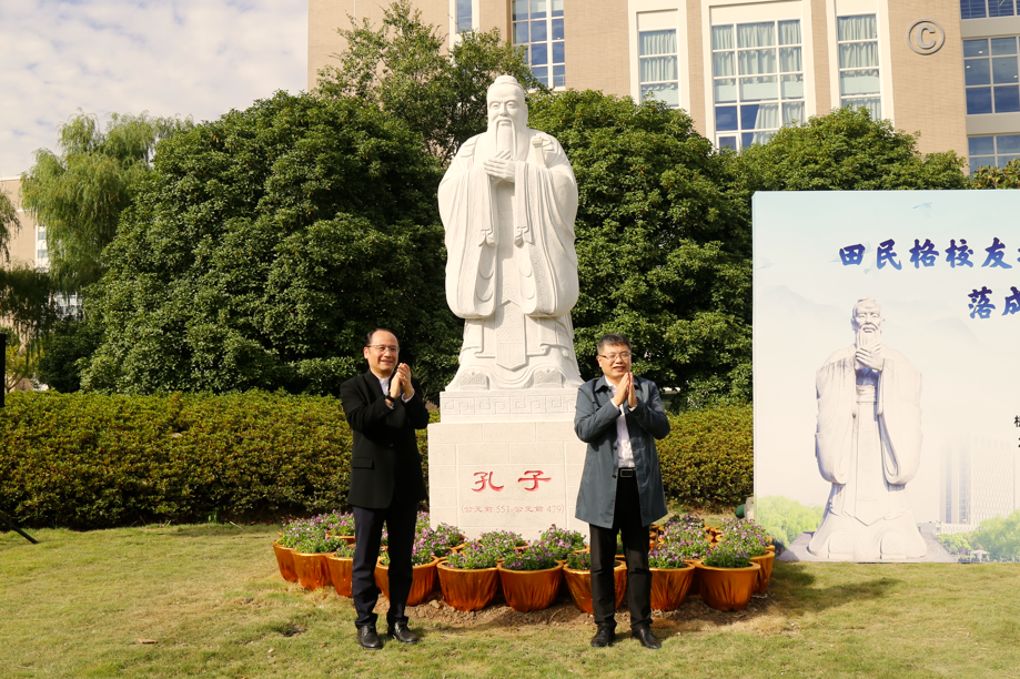 俞涛校长和田民格校友共同为孔子像揭幕。
