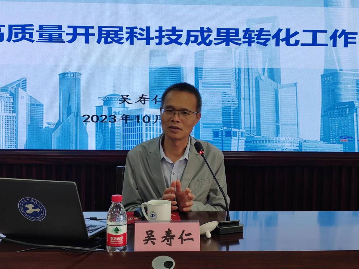 吴寿仁副所长以《如何高质量开展科技成果转化工作》为题作专题报告。报告聚焦科技成果转化系统模型、高校科技成果转化过程、企业获取科技成果的主要方式、科技人员双创的转化途径、充分发挥科技成果转化中介的作用、用好政府的政策6个方面进行讲解,并结合实际的案例进行剖析,为学校开展高质量科技成果转化提供建议。