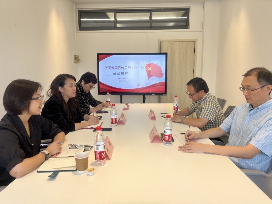 10月30日下午,继教产业联合党总支在长宁校区教学楼404会议室召开中心组学习会,传达学习习近平总书记关于宣传思想文化工作重要指示精神,专题研讨学习习近平文化思想。全体中心组成员参加学习会,校巡察办常务副主任刘珺列席旁听,会议由继教产业联合党总支书记袁蓉主持。