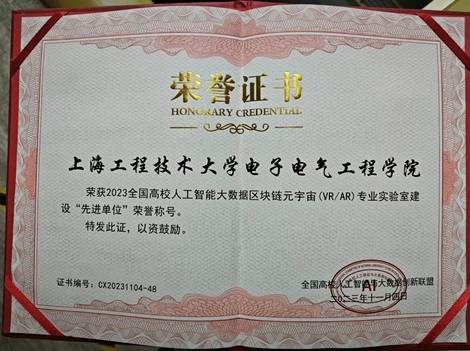 11月4日,由全国高校人工智能与大数据创新联盟、华算人工智能研究院主办,中科院软件所指导,云南大学、东华大学、上海工程技术大学、机械工业出版社、北京中关村软件园人才基地培训中心、北京经济技术开发区企业协会等全国20多家高校和机构协办的“产学合作、协同育人2023第六届全国高校人工智能大数据区块链元宇宙教育教学创新论坛”在北京召开。电子电气工程学院受邀出席并荣获2023全国高校人工智能大数据区块链元宇宙(VR/AR)专业实验室建设“先进单位”荣誉称号。