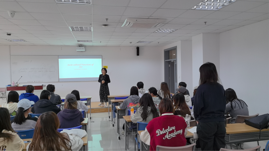 文娟老师结合丰富的手工艺术专业教学经验,精心设计了一堂《艺术的社会文化功能》理论课。重点讲述了艺术设计既来源于生活,又还原生活,与社会生活实践紧密结合的相关理论与案例。她将从自然与社会生活中提炼出来的艺术形式美感再次融入并返还于社会生活的相关设计,使之既具有审美功能,又兼具引导性、辨别性与独特性。