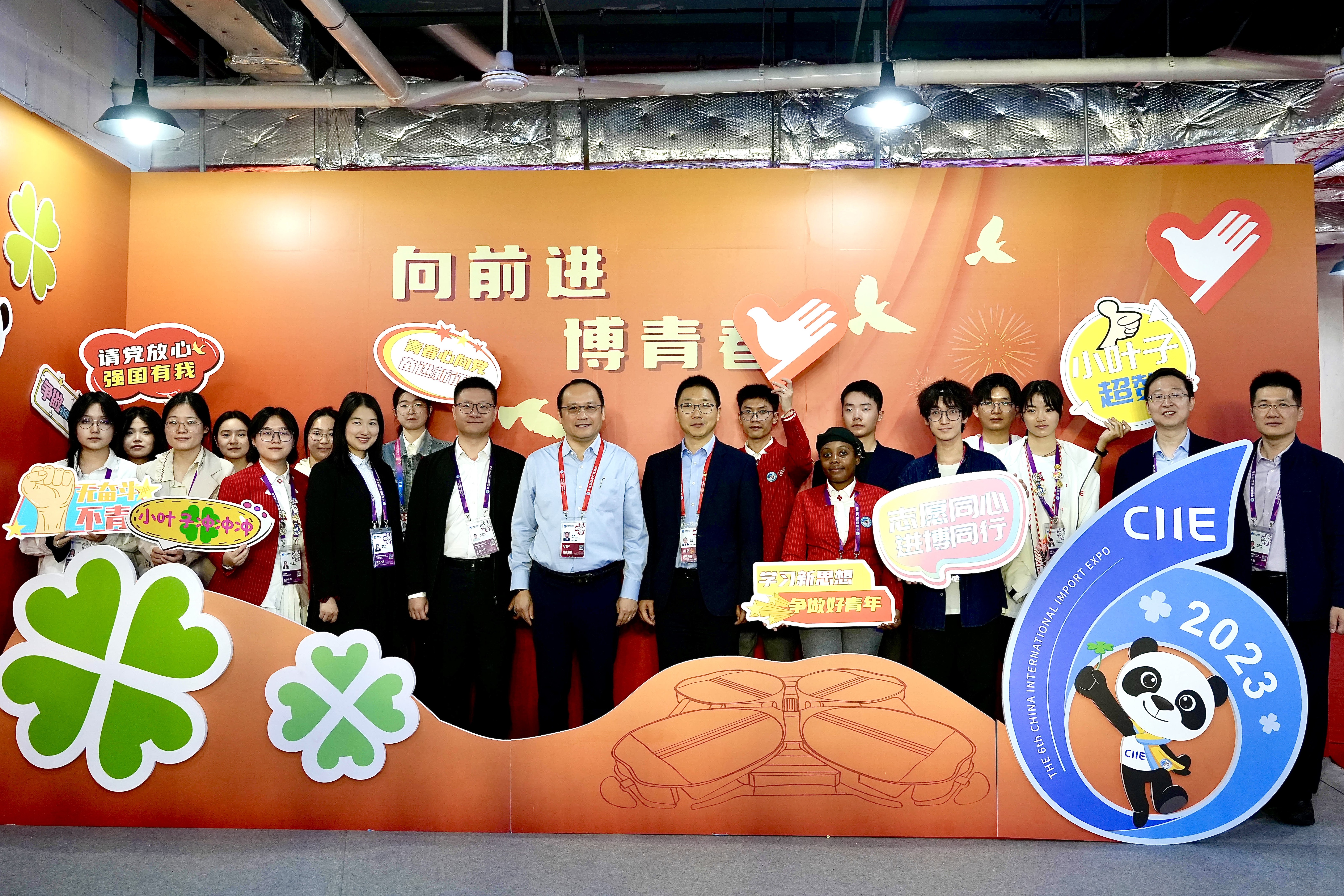 11月8日,校长俞涛,校党委副书记、副校长朱晓青在团市委副书记王江的陪同下,慰问了奋斗在国展文创馆、观展团、技术装备展区等岗位上的“小叶子”们,校领导与志愿者们亲切交流并关心询问“小叶子”们的上岗情况。在对话中,“小叶子”纷纷表示,能在大学期间参加进博会令他们倍感荣耀,工程大“小叶子”不怕苦、能吃苦,愿奉献,共拼搏。校领导一行对“小叶子”为第六届进博会顺利召开提供的服务保障表示充分肯定并感谢同学们的辛勤付出,校长办公室主任王佳杰、团委书记陈翼然、团委副书记徐靓雯等陪同慰问。