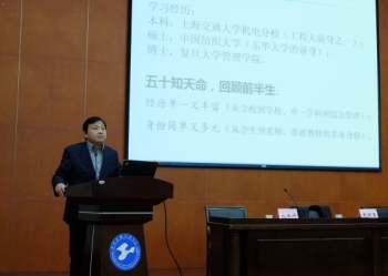 史健勇教授首先与大家分享了他的成长、工作经历,简单一句“经历单一又丰富,身份简单又多元”折射了他为师者的决心与毅力。30多年来他深深的热爱着工程大的一草一木,全心全意服务工程大的发展,做到与学校共成长,他展现出的毅力和勇气,让与会同学感受到深切的鼓舞。史健勇教授结合东方管理中 “人为为人”、“上善若水”、“天人合一”等理念,要求工程大学生“做有文化的青年人”,着重强调了文化内涵的重要性,建议将修身、慎独、自觉、善良作为所有工程大学子前行的方向,力争“做最好的自己!”他为同学们解析了管理学院LOGO的含义,还以“博学思辨,践行卓越”的院训作为精神凝练,引经据典,为全体管院学子提出了希望与要求。今天青年之精神,将是未来社会之面貌;今天青年之追求,将是未来国家之走向。年轻人肩负着时代的责任和光荣,青春更是一种坚忍不拔、积极进取、乐观有为的人生态度。