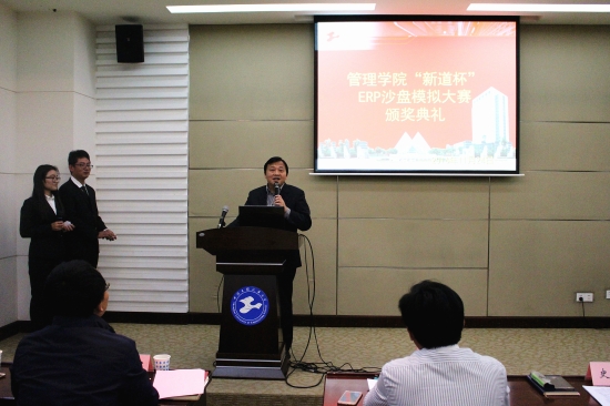 11月24日下午,管理学院首届“新道杯”ERP沙盘模拟经营大赛颁奖典礼在图文信息中心第四报告厅举行,副校长、管理学院院长史健勇,副院长胡斌,党委副书记范君晖以及指导老师代表高超锋、邓业建,辅导员顾静出席了本次颁奖。