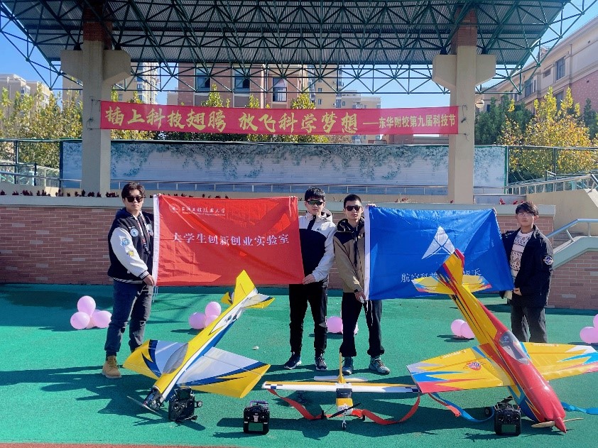 为深入推进航空科普进校园,落实立德树人根本任务,航空运输学院(飞行学院)立足于学院创新创业实验室,积极组织学生参加各类科普活动,把科技梦想植根于少年心中。应东华大学附属实验学校、上海外国语大学附属外国语学校云间学校(上外云间)邀请,近期,上海工程技术大学航模队在航空运输学院党委副书记戴振华老师、学院辅导员王思凌老师的带领下,参加了两校科技节开幕式,进行航模飞行表演及航空科普讲解,得到了学生们的热烈反响。