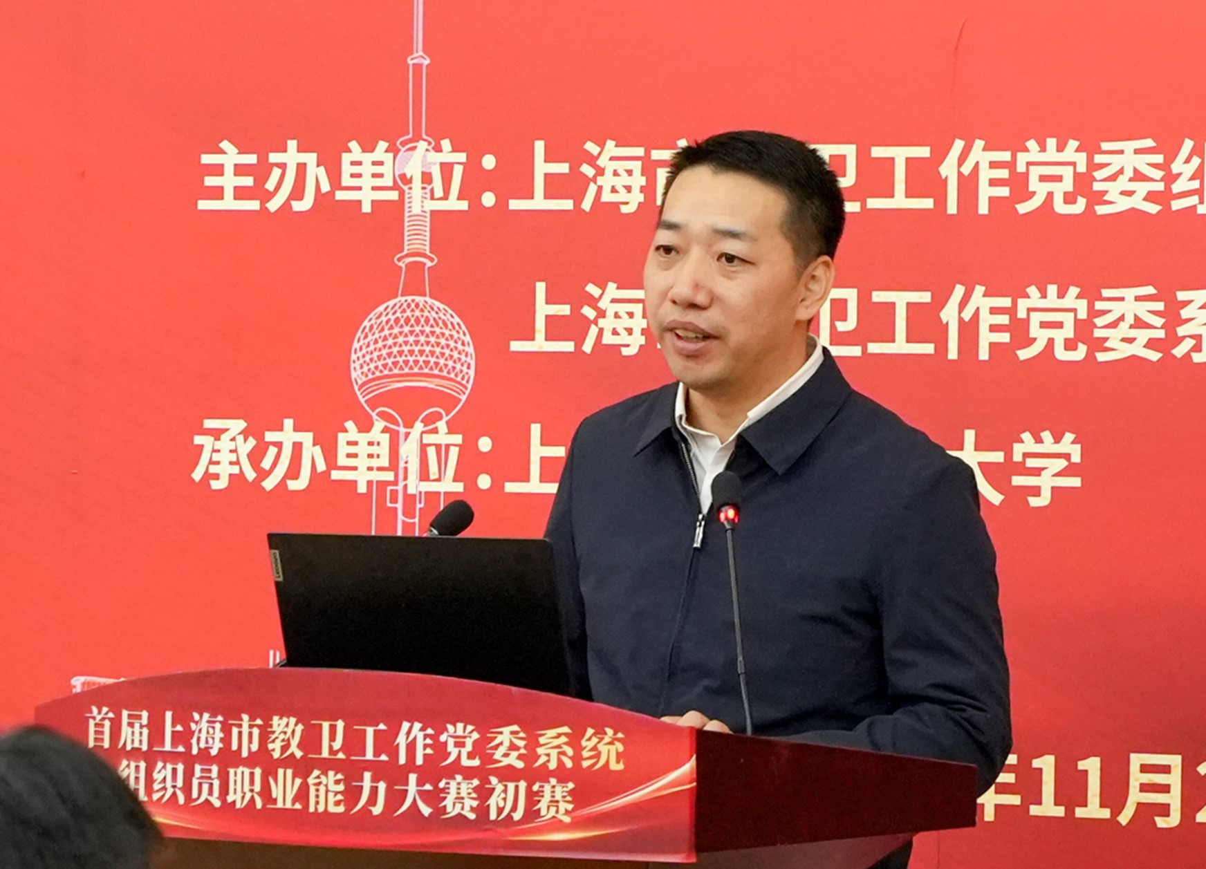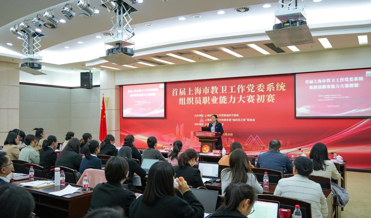 11月20日下午,首届市教卫工作党委系统组织员职业能力大赛初赛在我校松江校区图文信息中心第三报告厅举行。我校党委副书记史健勇,校党委常委、组织部部长朱洪春,市教卫工作党委组织干部处副处长朱晨光出席大赛。市教师教育学院党建工作部负责人张美艳老师,市教卫工作党委“组织员之家”联席会理事长、上海师范大学党委组织部副部长杨成龙,市教卫工作党委“组织员之家”联席会监事长、上海工程技术大学党委组织部副部长熊伟,上海出版印刷高等专科学校党委组织部部长黄一涛和复旦大学新闻学院党委书记陆柳应邀担任专家评委。来自上海教卫系统40位组织员老师参加初赛并观摩学习。