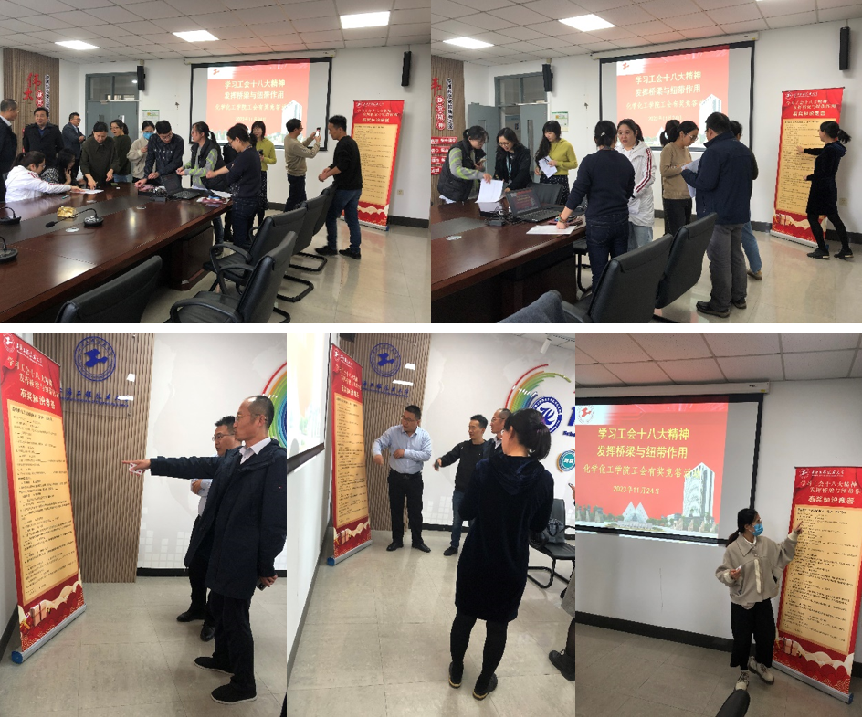 为了深入贯彻执行工会十八大精神,更好地发挥纽带与桥梁作用,为全体教职工服务, 11月23日,化学化工学院工会在实训楼4414室开展了由学院党政领导,工会委员和工会积极分子参加的“学习工会十八大精神,发挥桥梁与纽带作用”知识竞赛活动。