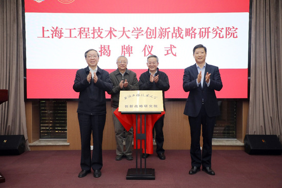 钱锋院士和李江书记共同为上海工程技术大学创新战略研究院揭牌。