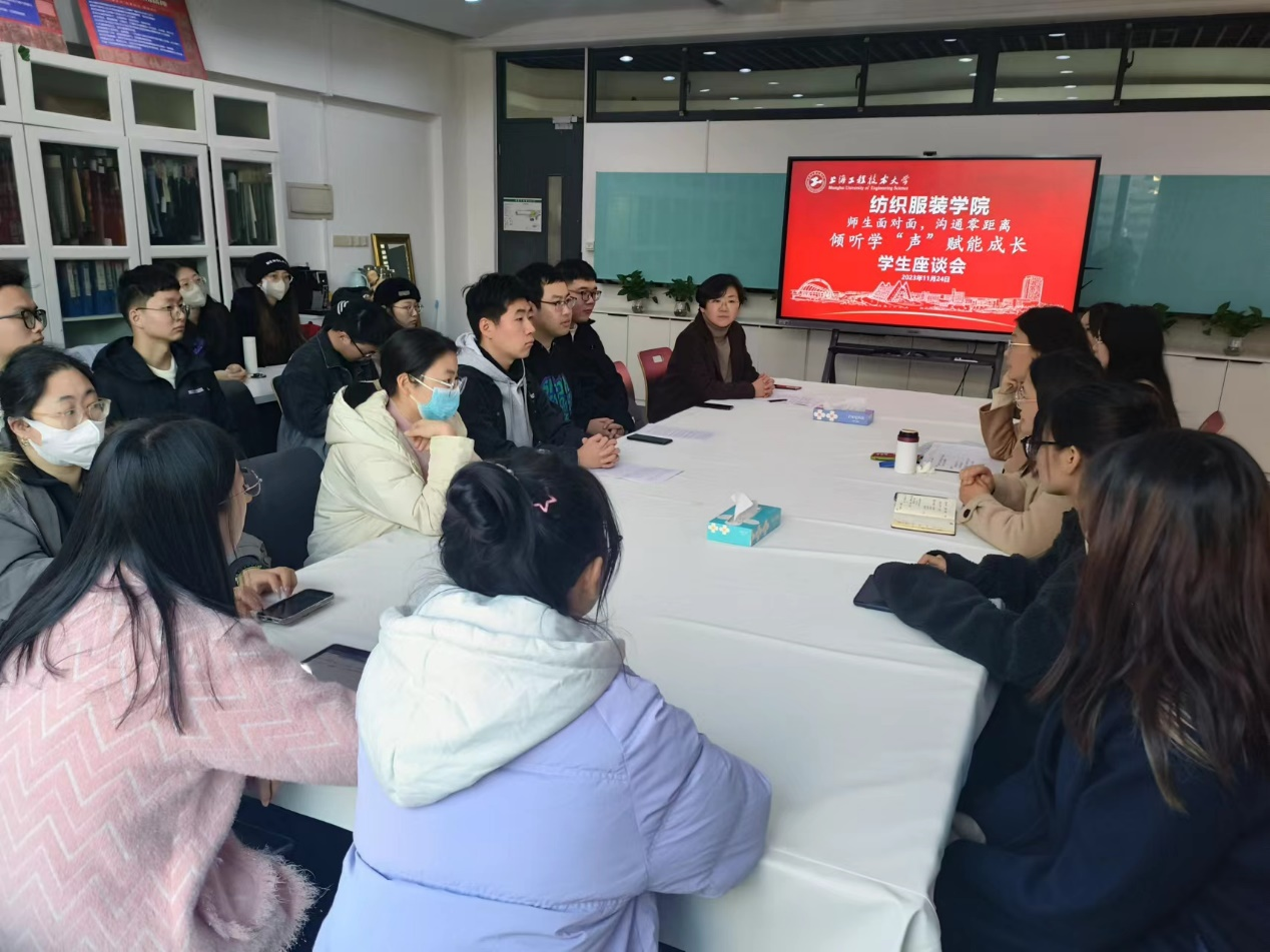 为促进纺织服装学院教师和学生之间的交流与互动,激发研究生在学业、科研及就业等方面的热情与思考。纺织服装学院于11月24日中午在艺术楼C210组织开展“师生面对面,沟通零距离”品牌项目——“倾听学‘声’ 赋能成长”学生座谈会,纺织服装学院党委书记朱君璇,党委副书记谢志霞、副院长徐丽慧出席会议,辅导员孙琴主持。