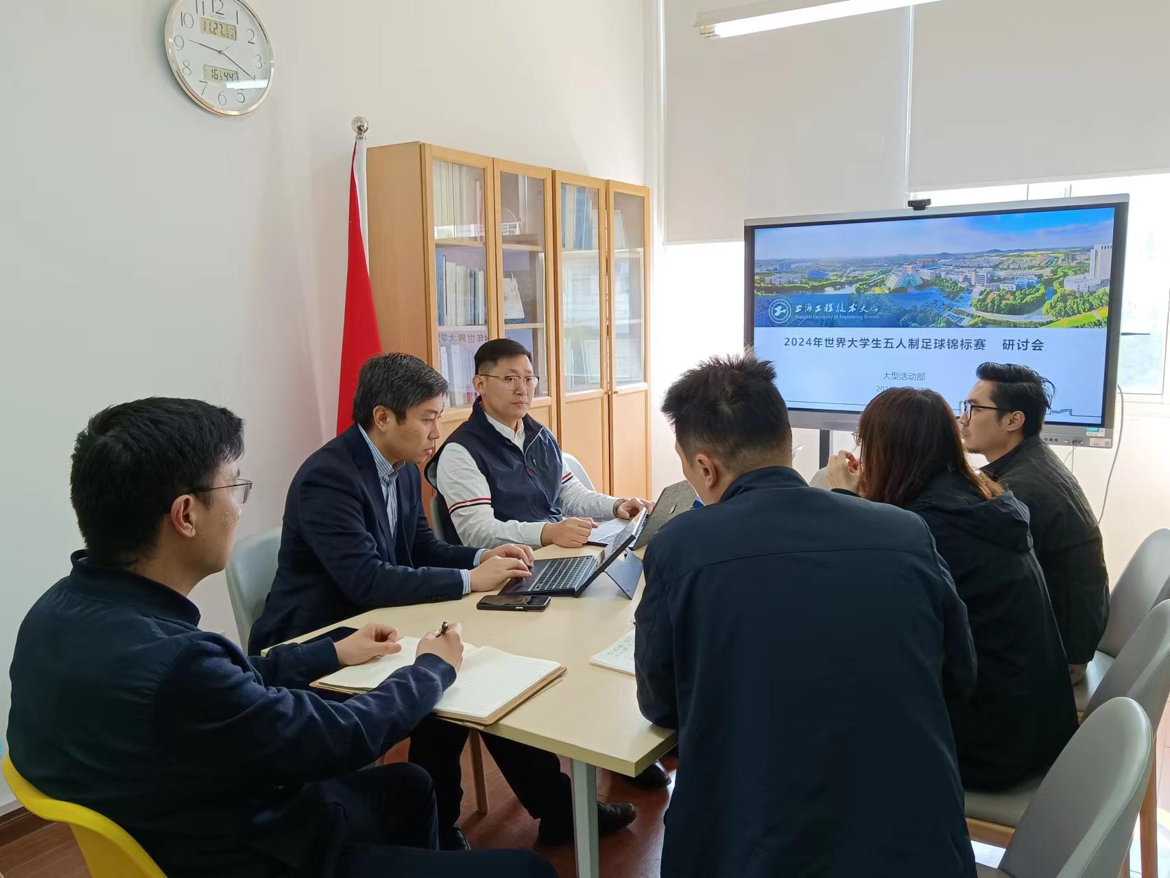 第十八届世界大学生五人制足球锦标赛将于2024年6月10至16日在我校举行。为顺利地推进赛事筹备中开、闭幕式的各项工作,11月27日上午,大型活动部在师生活动中心A402召开赛事推进会。学生工作部(处)长、研究生工作部部长吕宁,校团委书记陈翼然、学生工作副部(处)长朱良博、姜剑及相关老师出席会议。会议由学生工作部(处)长、研究生工作部部长吕宁主持。